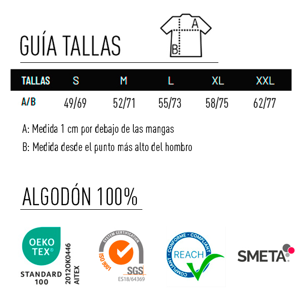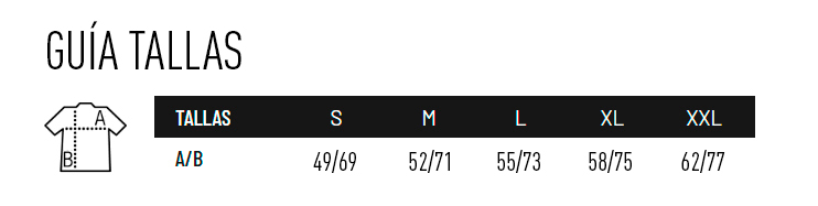 (A: Medida 1 cm por debajo de las mangas / B: Medida desde el punto más alto del hombro)